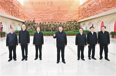 隨后,習近平等集體乘車前往延安革命紀念館,參觀《偉大歷程——中共中央在延安十三年歷史陳列》。