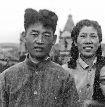 牧虹和妻子仲偉在延安魯迅藝術學院的照片。