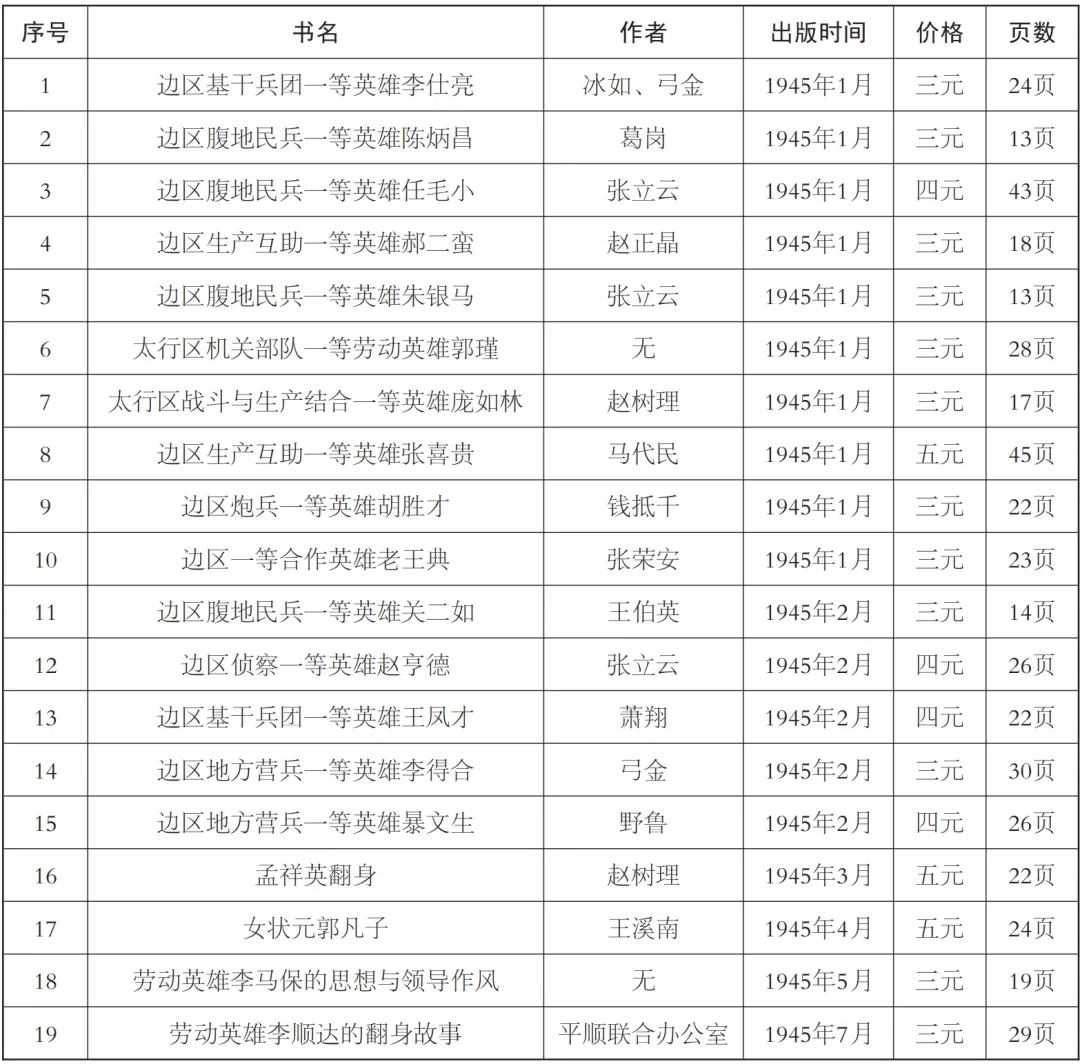 [12] 據(jù)筆者目前對(duì)相關(guān)書籍的搜集與統(tǒng)計(jì),這套叢書至少包含19冊(cè),分成三批出版:1945年1月出版10種,2月出版5種,包含趙樹理《孟祥英翻身》在內(nèi)的4冊(cè)書在3至7月陸續(xù)推出。實(shí)物見于中國(guó)國(guó)家圖書館、北京大學(xué)圖書館與中國(guó)人民大學(xué)圖書館。特此感謝中國(guó)國(guó)家圖書館善本古籍閱覽室工作人員、北京大學(xué)圖書館李大釗閱覽室孫雅馨老師與中國(guó)人民大學(xué)圖書館善本特藏部朱小梅老師提供實(shí)物并各類信息。