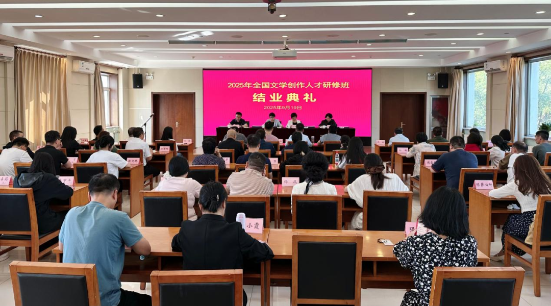 9月19日,2025年全國文學創作人才研修班結業典禮在京舉行。來自全國各地的50名作家圓滿完成學習研修任務,順利結業。魯迅文學院常務副院長李東華、中宣部文藝局理論文學處三級調研員朱昱熹、魯迅文學院副院長張明遠出席結業典禮,并為學員們頒發結業證書。結業典禮由魯迅文學院副院長郭艷主持。