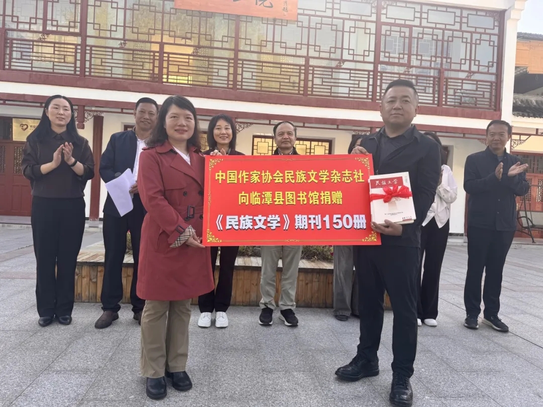 9月19日,《民族文學》期刊捐贈儀式在臨潭縣冶力關鎮文心書院舉行。《民族文學》向臨潭縣圖書館捐贈《<民族文學>精品選》及雜志150冊,捐贈儀式由趙凌宏主持。臨潭縣副縣長候選人胡嘉致辭,楊玉梅贈牌,臨潭縣圖書館館長黨建軍接牌。