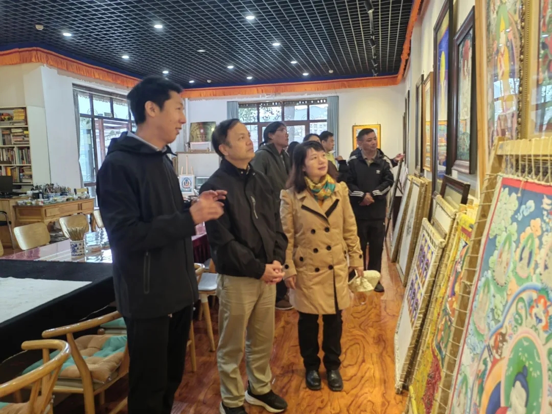 20日下午,作家們赴夏河縣唐卡小鎮參觀,與唐卡畫師進行深入交流,了解唐卡的繪制工藝、文化內涵以及唐卡小鎮的發展現狀和未來規劃。甘南唐卡被譽為藏族的“百科全書”,不僅是一種藝術形式,更是藏族文化的重要載體,是帶動當地經濟發展,促進文化傳承的紐帶,也是各民族之間交流與融合的橋梁。