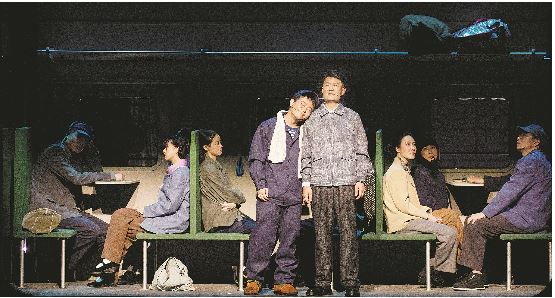 在舞臺上濃縮時光、提煉時代精神是一件困難卻又必須要完成好的創(chuàng)作任務。如何從娓娓道來的長篇敘事中,提煉出舞臺故事的精髓?在對《南來北往》的改編中,我們選取列車與小院作為核心敘事空間,由劇中人作為講述者,還原時光鏈條中人物命運的關鍵段落,突出不同時空人物的在場性。舞臺上的每一個人物都在共同經(jīng)歷著時光的洗滌,推動講述者和傾聽者之間的關系變化。在人物命運背后,時代的發(fā)展也恰如列車不斷前行,一段段記憶中的情感奔涌,時而靜水深流,時而浪濤翻滾。而如何寫好群像中的師徒情、父子情,以及始終閃耀的理想之光和時代浪潮中的人生百味,則是我們要著力思考的部分。