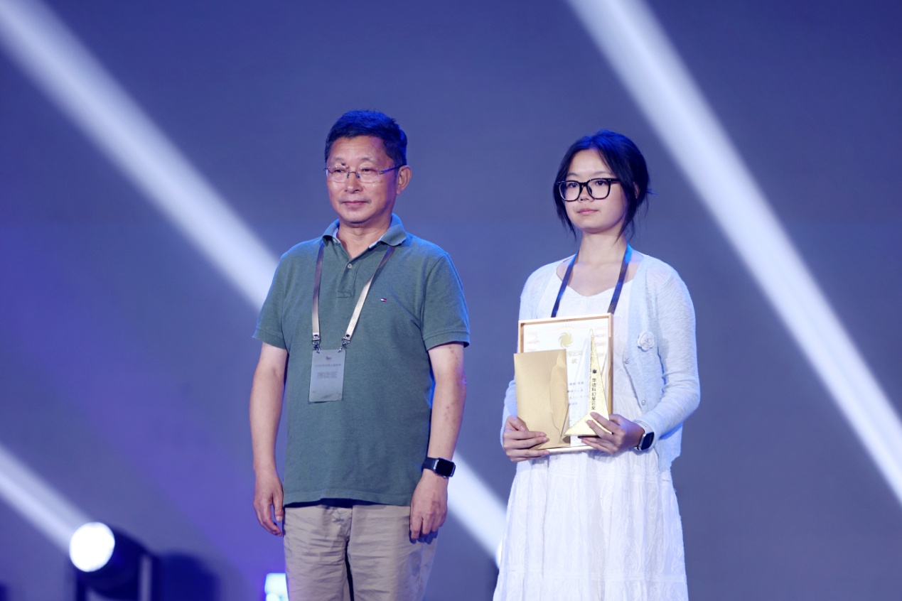 阿來在頒獎典禮上致辭,并為本屆星云獎青少年科幻征文大賽中學組金獎獲得者頒獎。