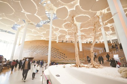 北京城市圖書館大廳屋頂的靈感來自銀杏樹葉,該館最近連摘3項國際設計大獎。 新華社發