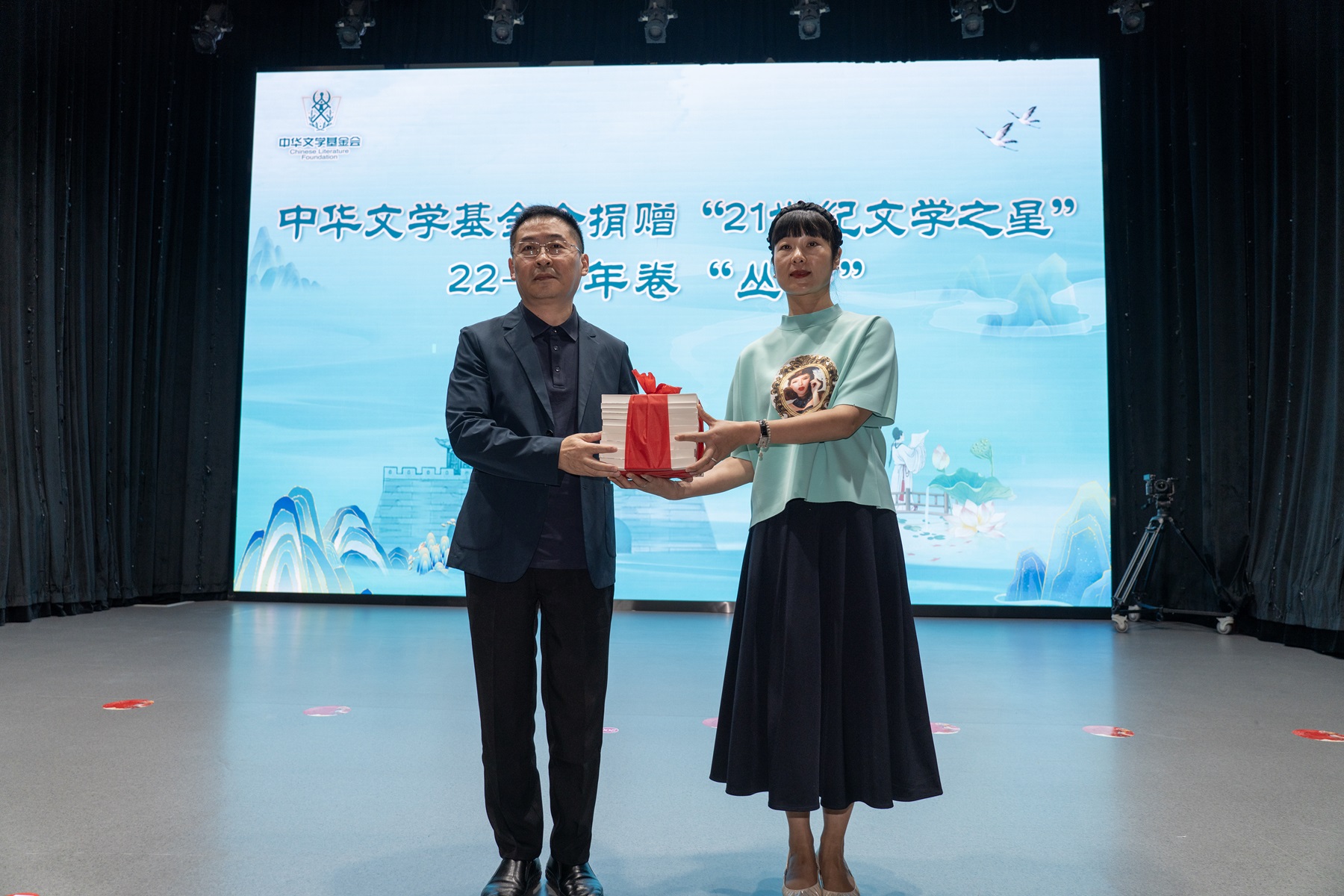 9月29日上午,壽縣文化藝術中心內,“21世紀文學之星”叢書2022-2023年卷出版發布會暨2024-2025年卷征選計劃啟動儀式隆重舉行。中華文學基金會理事長施戰軍,安徽省作協主席陳先發,安徽省淮南市壽縣縣委常委、宣傳部部長饒潔先后致辭。徐貴祥、彭學明、王躍文、許春樵、羅偉章、哲貴、肖勤、肖江虹等曾入選叢書的作家代表,以及“叢書”編委、評論家白燁、梁鴻鷹,“叢書”出版單位作家出版社副總編顏慧等出席發布會。中華文學基金會秘書長安亞斌向壽縣文學藝術院捐贈“21世紀文學之星”叢書簽名本,寓意書籍猶如文學希望的種子,將在壽縣的文學土壤中扎根,讓文學精神在這里延續。在青春洋溢的音樂中,2024-2025年卷征選計劃正式啟動。活動由中華文學基金會文學部負責人趙蓉主持。