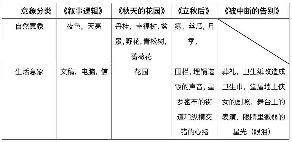 意象派詩歌的核心理論主張是“以精準(zhǔn)、清晰的意象傳遞情感與思想”,并明確提出“意象即意義”的創(chuàng)作理念。時曉詩歌中的意象系統(tǒng)同樣超越了淺表的實(shí)物描寫層面,而是成為承載豐富情感內(nèi)涵與深刻人生況味的意義載體,其意象可分為“自然意象”與“生活意象”兩大類,不同類型的意象在四首詩作中呈現(xiàn)出差異化的分布與功能: