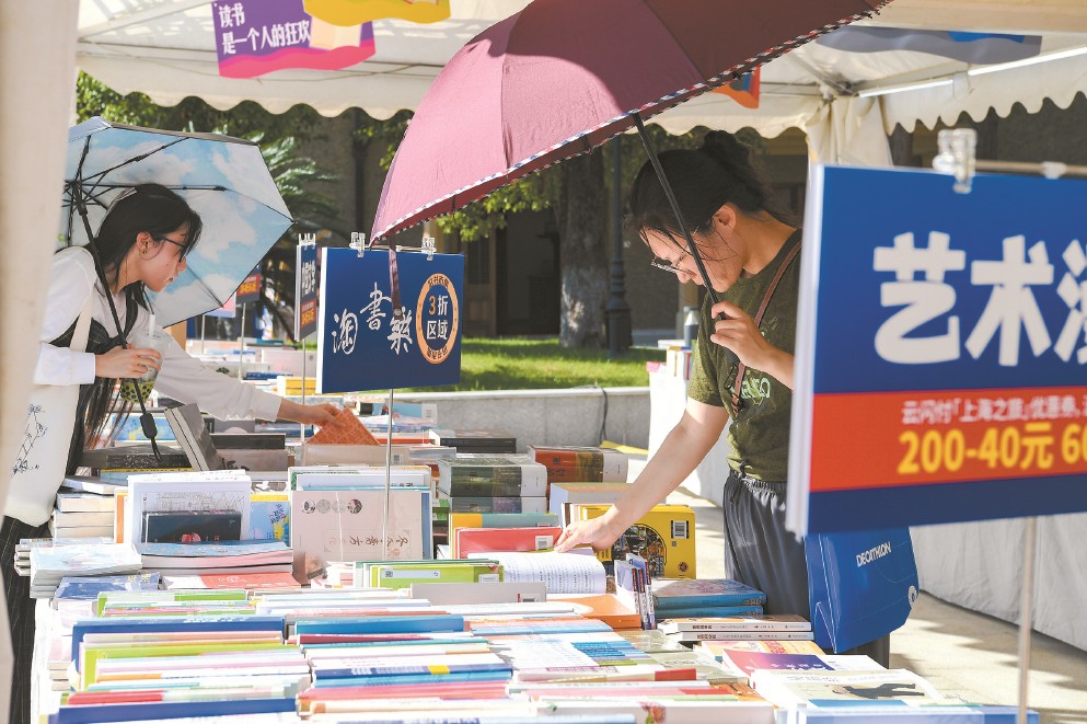 “每次‘淘書樂’舊書市集扎根所在地文化基因,都會(huì)策劃相應(yīng)的小型展覽或推出相關(guān)展陳,希望市集與地標(biāo)擦出更多有意思的火花。”上海圖書有限公司副總經(jīng)理程犁告訴記者,“淘書樂”舊書市集不斷迭代升級(jí),力求提升讀者體驗(yàn)和服務(wù)水平。無(wú)論是休閑區(qū)域的“吃咖啡”,還是以校區(qū)建筑群為元素定制的藏書票和套色紀(jì)念圖章,都是因地制宜的書香禮物,讓逛市集的人們更有獲得感,向讀者傳遞“舊書流通、閱讀循環(huán)、人際交流、文化傳播”的理念,也告訴更多人——閱讀可以很時(shí)尚,歷史可以很親切,古老校園可以很“好玩”。