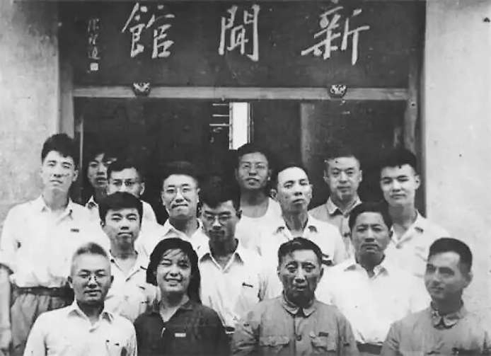 1952年,陳望道先生(前排右二)與復旦大學新聞系教師在新聞館前合影