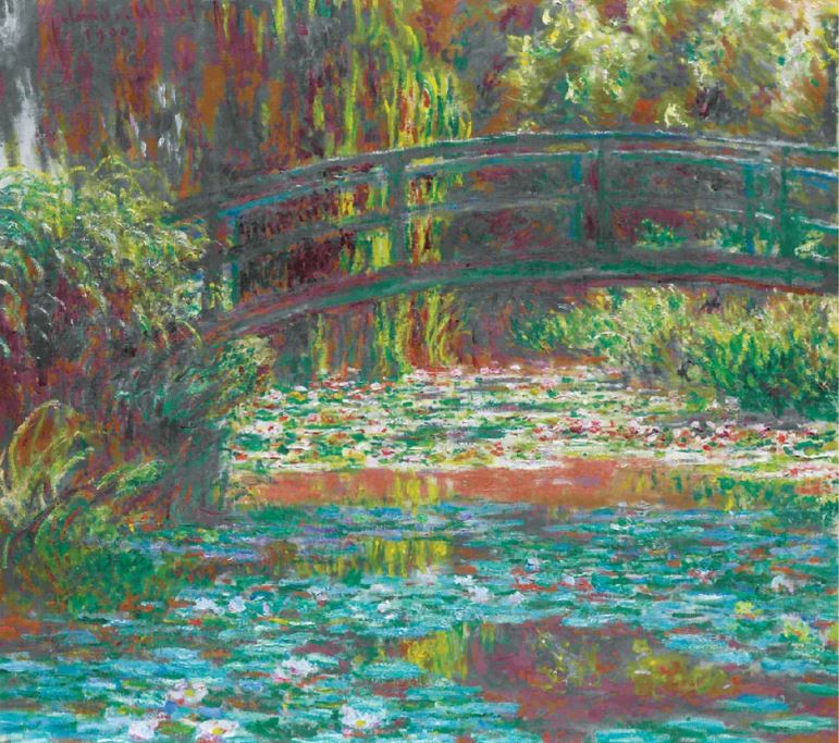 日本浮世繪對(duì)他的影響和啟發(fā)不僅體現(xiàn)在作品中,還體現(xiàn)在其晚年生活中。1883年5月初,莫奈和他的大家庭在吉維尼從當(dāng)?shù)匾晃坏刂髂抢镒饬艘凰孔雍突▓@。1890年11月,拜其畫(huà)商朋友杜朗·魯埃爾的成功市場(chǎng)運(yùn)營(yíng)所賜,莫奈已經(jīng)足夠富裕。他買(mǎi)下了這棟房子、周邊建筑、花園用地,甚至購(gòu)買(mǎi)了帶有水牧場(chǎng)的土地,開(kāi)始自己設(shè)計(jì)花園。除了是位功成名就的畫(huà)家,莫奈作為園藝師的身份也在其生前廣為人知。他筆下著名的睡蓮池、日本橋都是自己設(shè)計(jì)完成的,莫奈每天給他的園丁寫(xiě)指示精確的種植設(shè)計(jì)和布局,以及購(gòu)買(mǎi)花卉和收集植物學(xué)書(shū)籍的收據(jù)。隨著畫(huà)家財(cái)富的增長(zhǎng),“莫奈花園”也在不斷發(fā)展。即使生前雇了七個(gè)園丁幫他打理修建,莫奈仍然是花園的總園藝師。花園中靠近其居所的部分區(qū)域規(guī)劃得非常嚴(yán)謹(jǐn)合理,但以一條小徑分隔的睡蓮池部分則充滿著大自然的野趣。