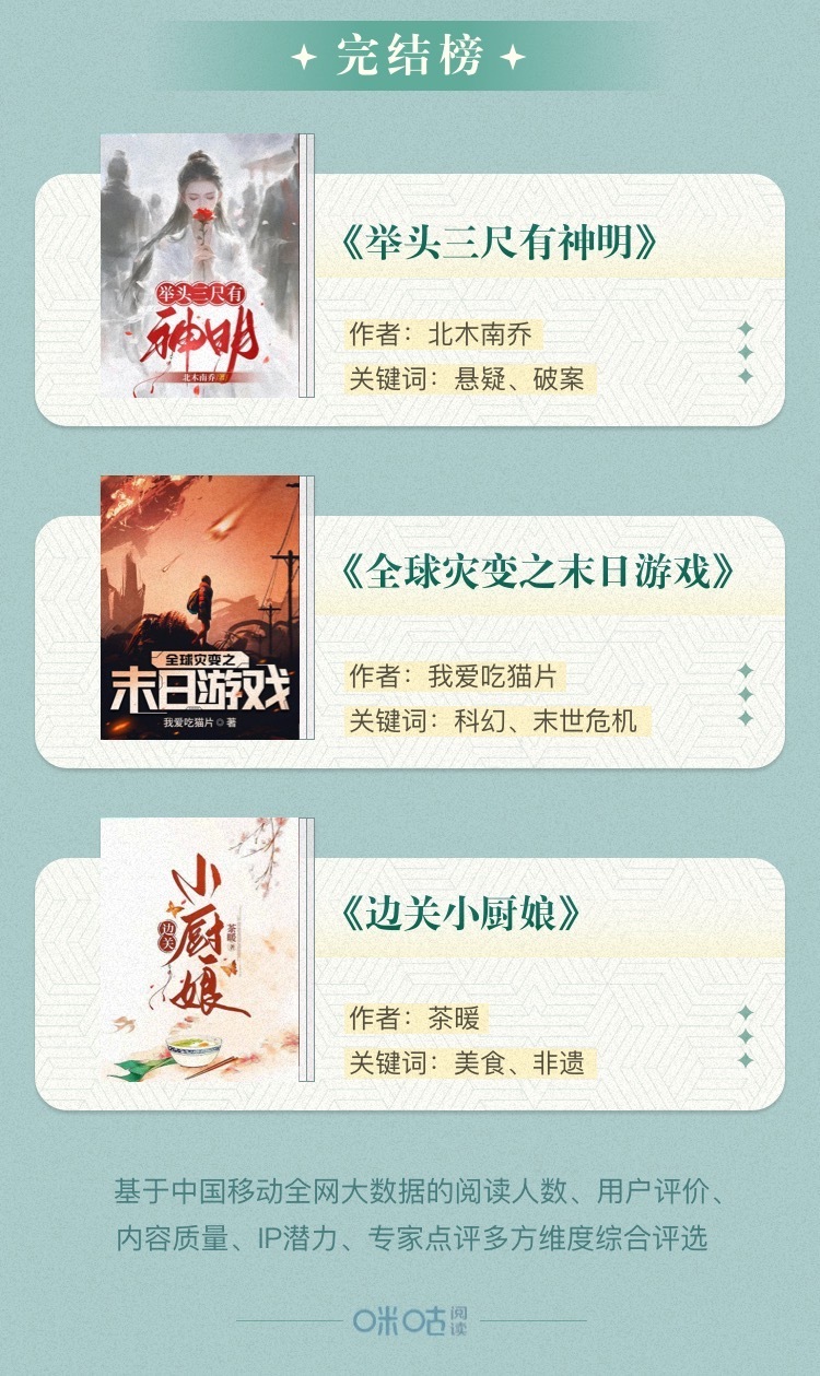 咪咕“悅讀好書(shū)榜” 第十期揭曉,現(xiàn)實(shí)關(guān)懷與類(lèi)型突破作品成焦點(diǎn)