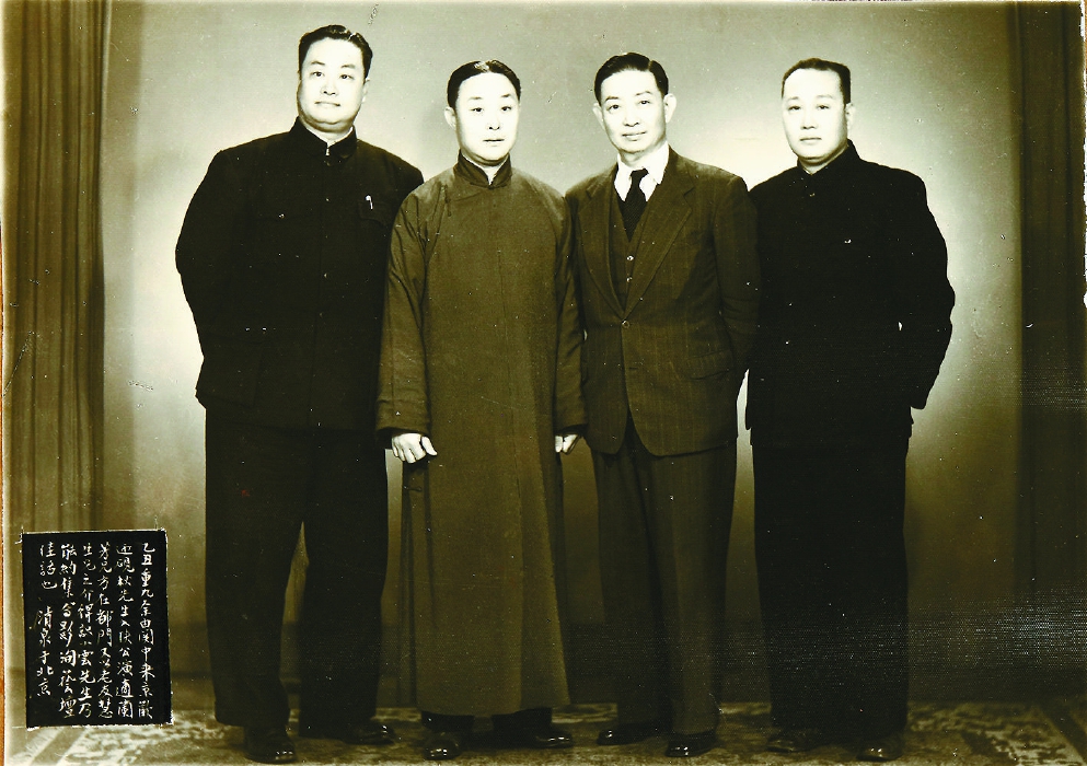1949年9月初,梅蘭芳因參加新中國(guó)第一屆政治協(xié)商會(huì)議與開國(guó)大典,再度回京。據(jù)許文記載,10月,自西安赴京邀約程劇團(tuán)的趙清泉,與許商議,想請(qǐng)四大名旦合影一次留作紀(jì)念。當(dāng)時(shí)程劇團(tuán)正在天津演出,等程硯秋返京,梅劇團(tuán)又要赴天津演出,很難碰頭。正巧舊劇科的王頡竹拿著北京市政府救災(zāi)委員會(huì)的信向梅蘭芳接洽,想組織一場(chǎng)四大名旦同臺(tái)的義演。梅蘭芳于是推遲原計(jì)劃10月28日開始在天津的營(yíng)業(yè)戲,義演定于10月29日。許姬傳在《梅邊瑣記》里專有一篇《梅尚程荀會(huì)串》,詳記了此場(chǎng)演出。劇目有張?jiān)葡⑸虚L(zhǎng)春《白水灘》,馬富祿、小翠花《打刀》,尚小云、荀慧生《樊江關(guān)》,大軸是《回荊州》,程硯秋、梅蘭芳分飾前后孫尚香,譚富英飾劉備,奚嘯伯飾喬玄,楊寶森飾魯肅,裘盛戎飾孫權(quán),侯喜瑞飾張飛,李多奎飾吳國(guó)太,蕭長(zhǎng)華飾喬福,于世文(許文記為楊盛春)、孫毓堃分飾前后趙云。這個(gè)陣容蔚為大觀,幾乎集合了當(dāng)時(shí)北京京劇界所有一流演員,四大名旦同臺(tái)更是多年未見。