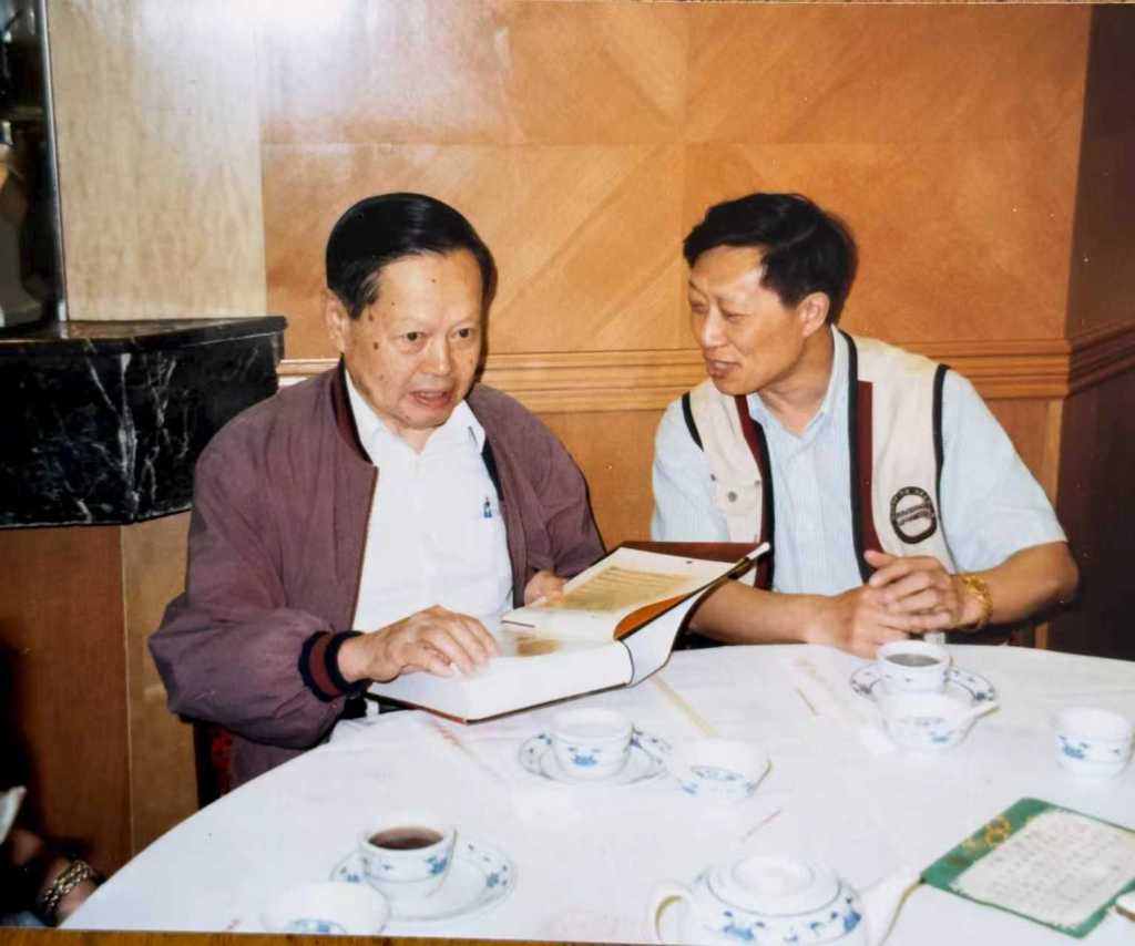 我寫過一篇文章,題目叫《“我們下次再請饒先生”》,這句話是楊振寧教授說的。1991年夏天的某日,楊教授打電話給我,說星期六可否約幾個朋友到12苑(楊的宿舍)聚聚,我問:“那請什么人?”楊即說:“你決定即可。”我說,可否請饒宗頤、吳培南及阮廷焯?楊說可以。當一切定下來后,那天上午我先去跑馬地接饒先生,然后乘出租車到地鐵站,待到了中文大學站后,我即用站臺下的電話告知楊教授,我們到了。是楊開車來接我們的。中午飯是我太太趙宏梅和弟媳趙宏芳一起做的,那天我和沈平作陪。記得楊說起他在歐洲的博物館里見到一件古代中國銅器,但不知是什么器物。于是饒先生就說起此件銅器的來龍去脈。大家都對饒的博聞表示欽佩,但還聊的什么卻一點都不記得了。下午四時左右,饒和阮夫婦離開12苑,楊即開車,和我送饒去中大地鐵站。在回宿舍的路上,楊對我說:“饒先生真是‘博’,看來下次我們再請他。”