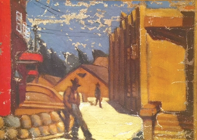 重返日本留學后,他創作了油畫《失業者》(1927)。這幅作品乍看是一幅描繪街角的小幅風景畫,只有兩個看不清楚面目的人影居于畫面中央,一近一遠。實際上,畫家要描繪的中心正是這兩個模糊的人影——他們是在資本主義壓迫下失去職業的勞動者。作品含蓄地揭露了工人與資本家之間的社會矛盾。然而,《失業者》這個畫題對于統治當局來說過于刺眼,因此在《良友》畫報刊載時,這幅畫改名為《彷徨者》。除了《失業者》以外,1934年發表的《逃荒者》《鋪路者》更是表現出許幸之批判現實主義的主張。《鋪路者》將對社會批判的鋒芒藏于平淡、沉穩的畫面中,《逃荒者》則是直接將勞動人民的苦難生活化為明晃晃的利劍,刺向觀者的眼睛。