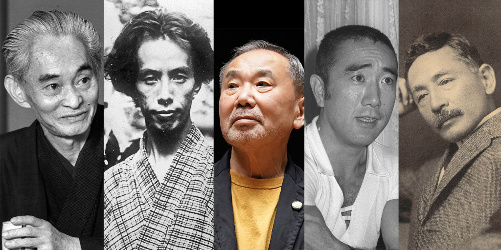 左起:川端康成、芥川龍之介、村上春樹、三島由紀夫、夏目漱石
