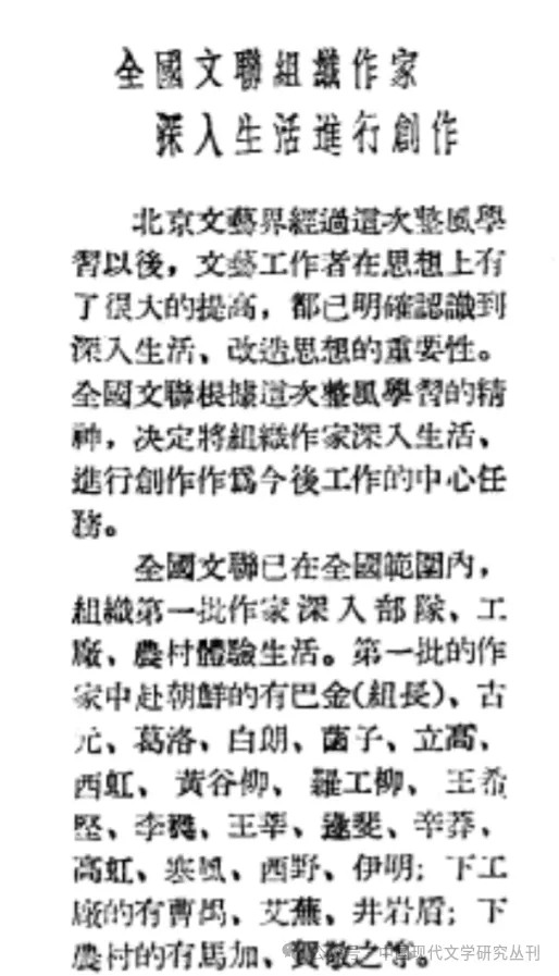 《全國文聯組織作家深入生活進行創作》,《文藝報》1952年第5號