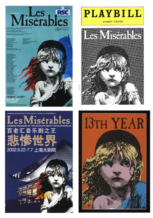 1985年倫敦初版及全球多個(gè)制作版本的海報(bào),均使用上述珂賽特畫像作為主要元素
